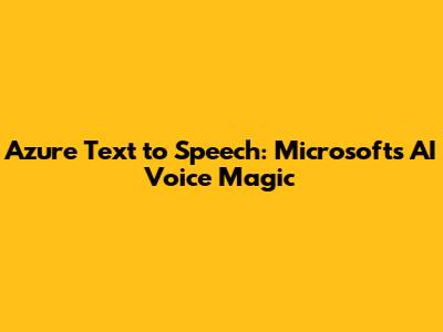 Azure Text To Speech: Microsoft's AI Voice Magic