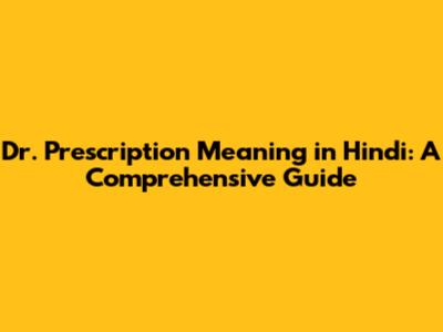 Dr. Prescription Meaning In Hindi: A Comprehensive Guide