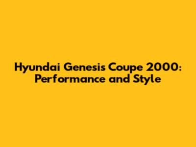Hyundai Genesis Coupe 2000: Performance And Style