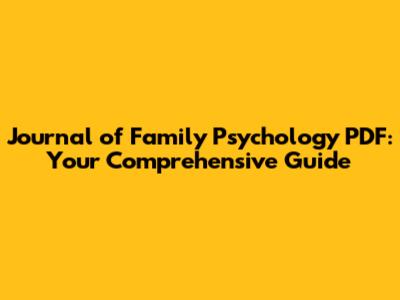 Hey guys! Are you looking for resources related to family psychology? Whether you're a student, a seasoned practitioner, or simply someone interested in understanding family dynamics better, accessing the Journal of Family Psychology in PDF format can be incredibly valuable. This guide will walk you through everything you need to know about this essential resource.