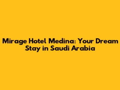 Mirage Hotel Medina: Your Dream Stay In Saudi Arabia