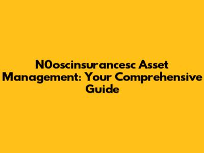 N0oscinsurancesc Asset Management: Your Guide