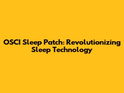OSCI Sleep Patch: Revolutionizing Sleep Technology