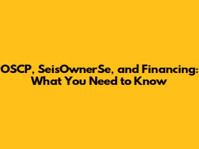 OSCP, SeisOwnerSe, And Financing: What You Need To Know