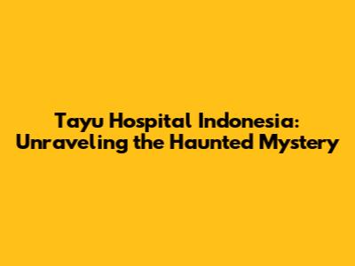 Tayu Hospital Indonesia: Unraveling The Haunted Mystery