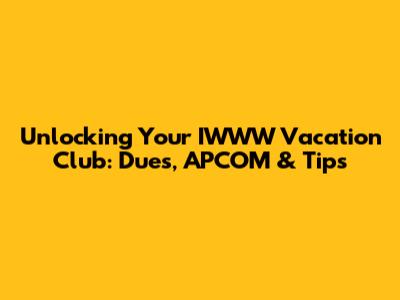 Unlocking Your IWWW Vacation Club: Dues, APCOM & Tips